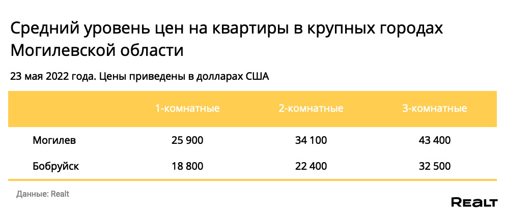 Мониторинг цен предложения квартир в Могилеве и городах Могилевской области за 16−23 мая 2022 года