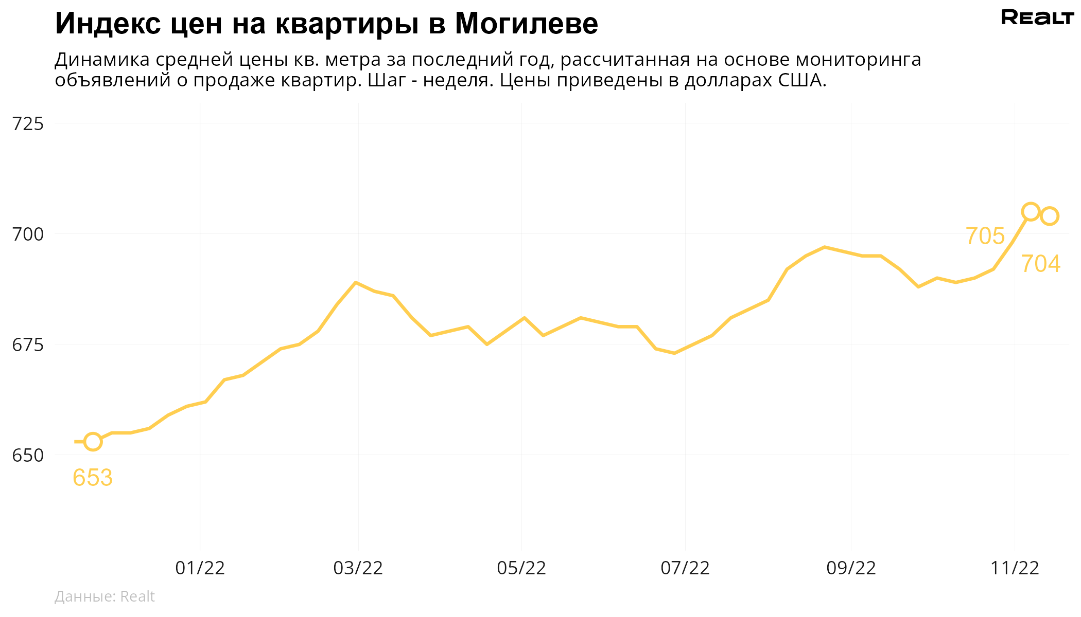 Мониторинг цен предложения квартир в Могилеве и городах Могилевской области за 7−14 ноября 2022 года