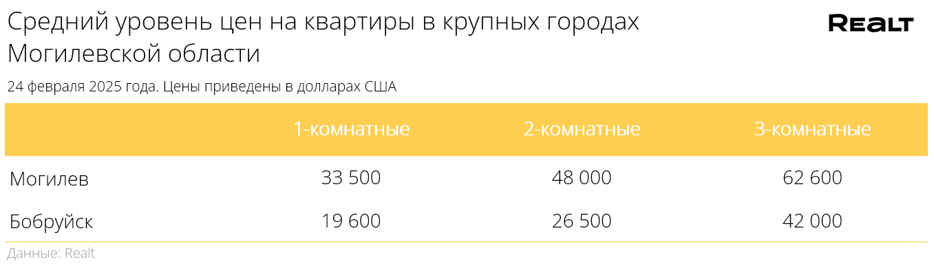 Для сравнения приведем средние цены на квартиры в других городах Беларуси:
