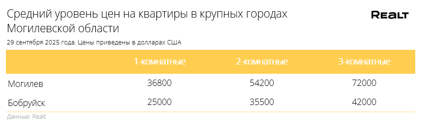 Для сравнения приведем средние цены на квартиры в других городах Беларуси: