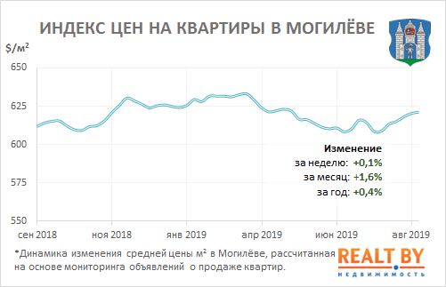 Средняя цена предложения в объявлениях о продаже квартир в Могилёве на минувшей неделе выросла на 0,1% и составила 621 $/м2.