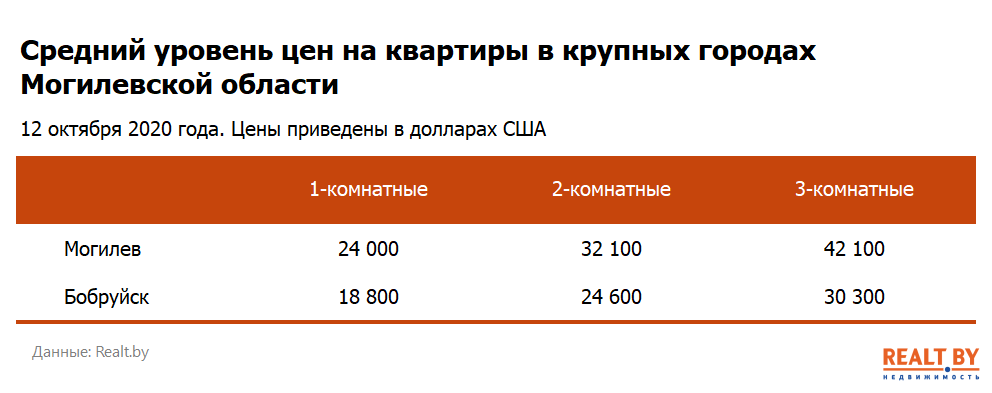 Мониторинг цен предложения квартир в Могилеве и городах Могилевской области за 5−12 октября 2020 года