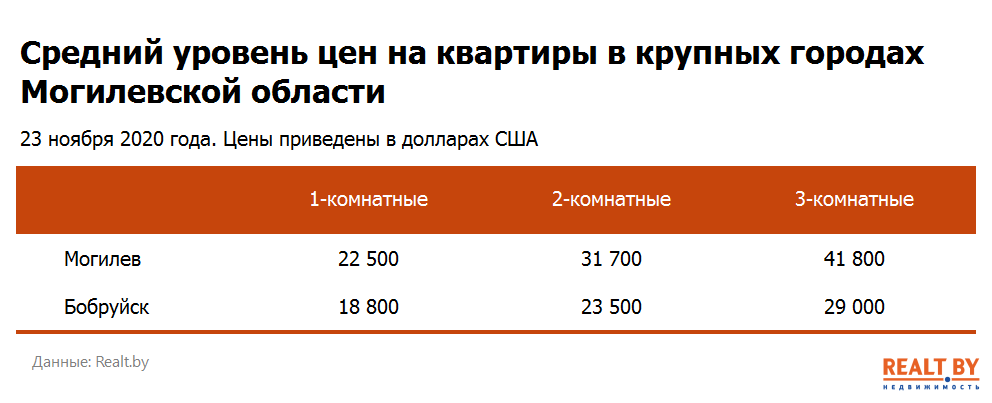 Мониторинг цен предложения квартир в Могилеве и городах Могилевской области за 16−23 ноября 2020 года