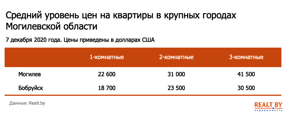 Мониторинг цен предложения квартир в Могилеве и городах Могилевской области за 30 ноября — 7 декабря 2020 года
