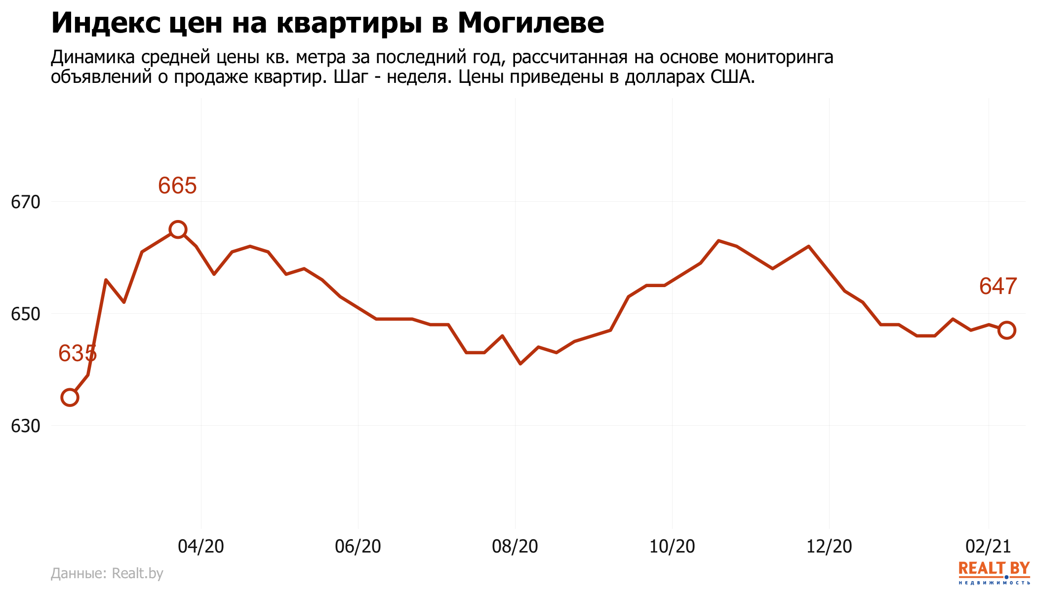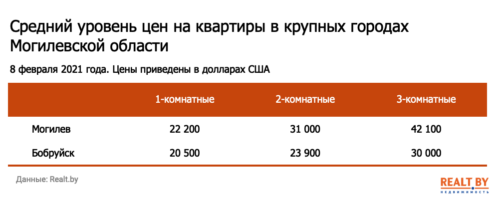 Мониторинг цен предложения квартир в Могилеве и городах Могилевской области за 1−8 февраля 2021 года