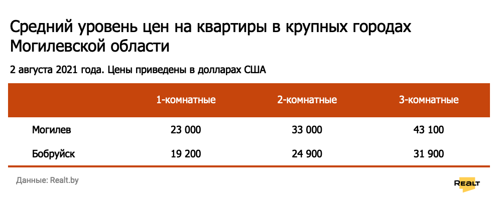 Мониторинг цен предложения квартир в Могилеве и городах Могилевской области за 26 июля — 2 августа 2021 года