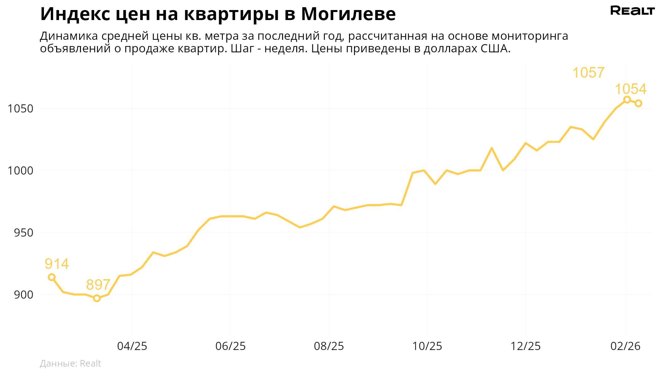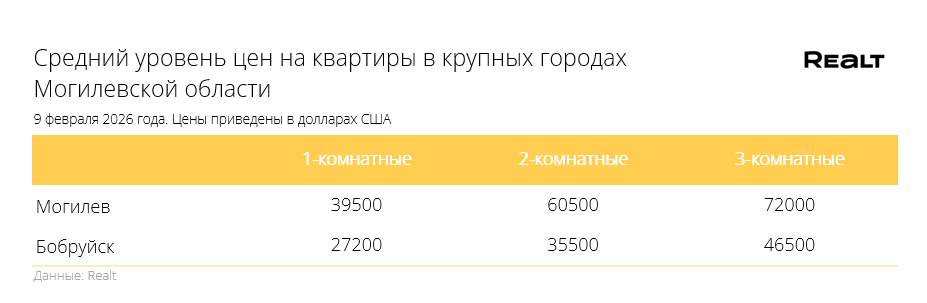 За месяц рост квадрата составил 2.7%. Что произошло со стоимостью квартир в Могилеве и области за 2−9 февраля 2026 года