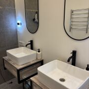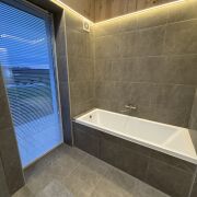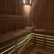 -три сан.узла ,в каждом из которых есть душевая кабина, а в одном находится ванна с видом на окрестности.