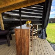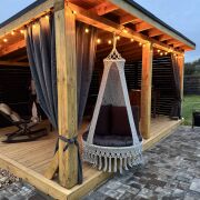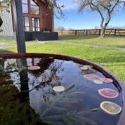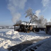 После активного дня на природе расслабьтесь в уютной бане, а затем окунитесь в купель, чтобы восстановить силы и насладиться моментом спокойствия.