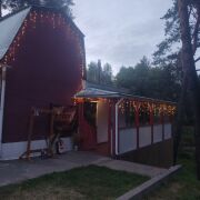 Можно разместить 20 человек+, теплые и холодные беседки, шатёр (банкетный зал) до 150 человек, игры в лазертаг, мафию, прокат квадроциклов, всё для праздника: фотозоны, ведущие, аниматоры, ростовые фигуры, фейерверки, шары и многое другое.