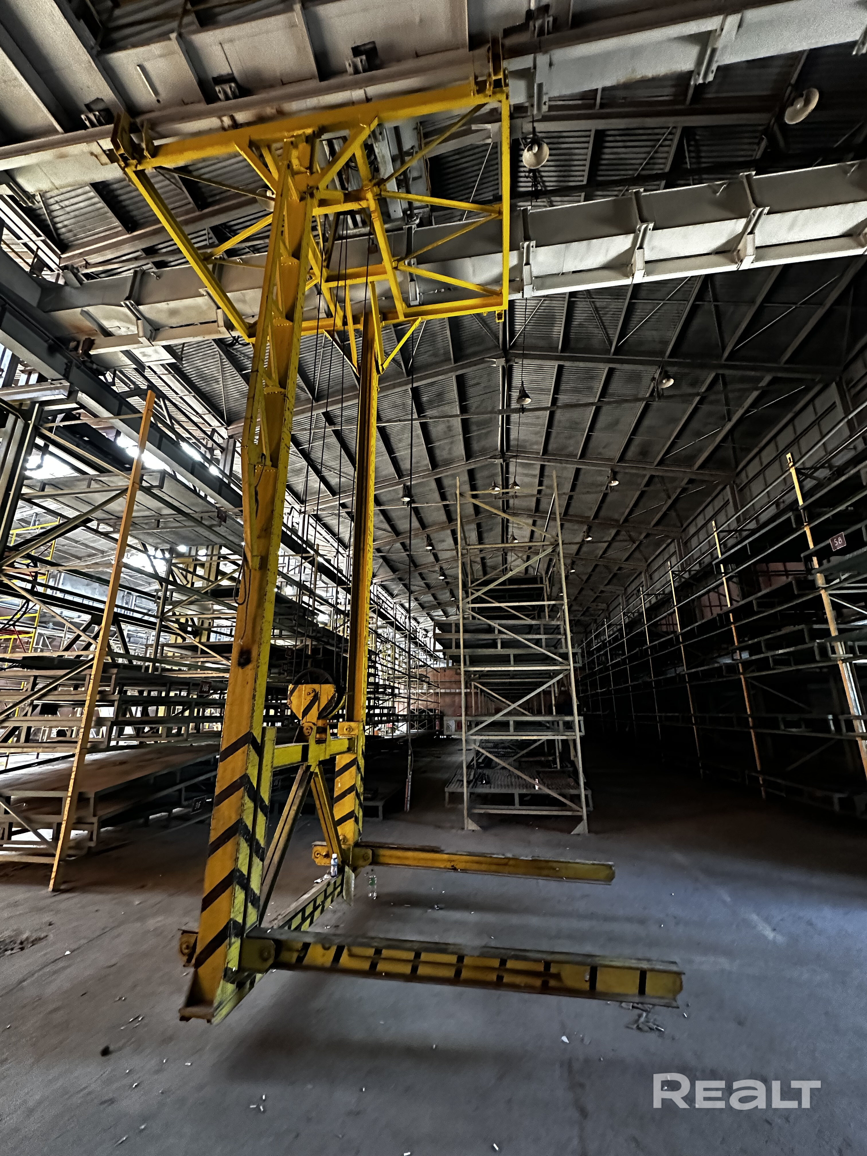 Внутри здания имеются кран-балки, промышленные стеллажи для хранения.