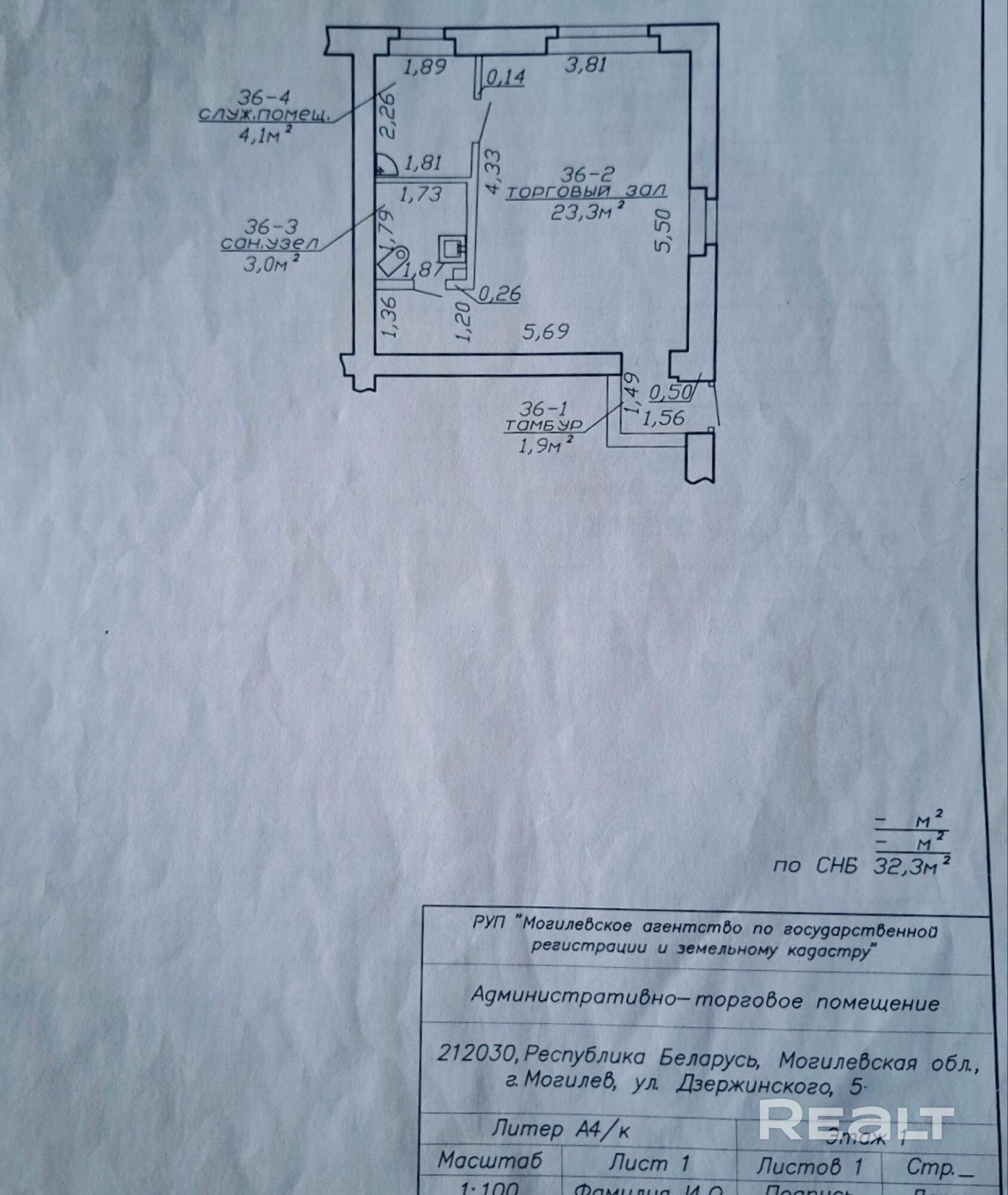 Сдается в аренду административно-торговое помещение по адресу: г. Могилев, ул. Дзержинского, 5. Центр города! Хорошая проходимость. Общая площадь 32.3 м2. Отдельный вход, ремонт, сан. узел. Электричество 220/380 Вольт. Звоните, ответим на все интересующие вопросы. ООО «Золотой актив», УНП 790812637, договор на оказание риэлторских Nº2/5а от 24/01/2026 Лицензия Министерства юстиции РБ N° 02240/247 от 22.02.2013