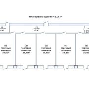 - Торговый дом №2 (156,7 кв.м.): 5 торговых помещений, котельная, с/узлом, пожарный выход.