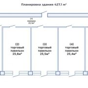 - Торговый дом №1 (427,1 кв.м.): 18 торговых павильонов, с/узлом, котельная.