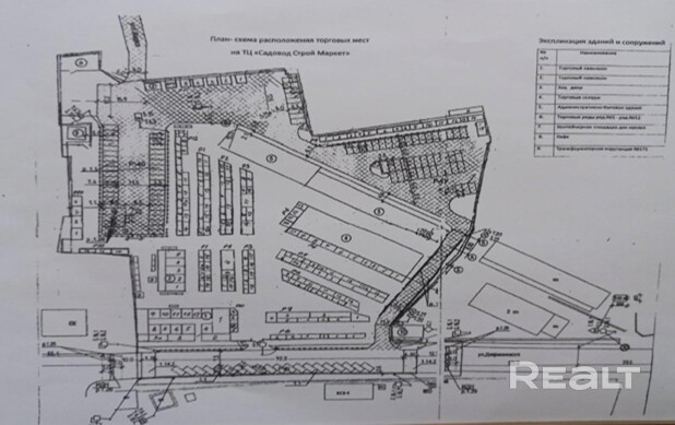 - Тип: коммерческий комплекс — рынок с торговыми павильонами, административным зданием, торговым зданием, складскими помещениями с подъездной рампой.