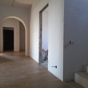 В холле уже уложена плитка на пол, санузлы на первом и на втором этаже облицованы плиткой(ванная в наличии).