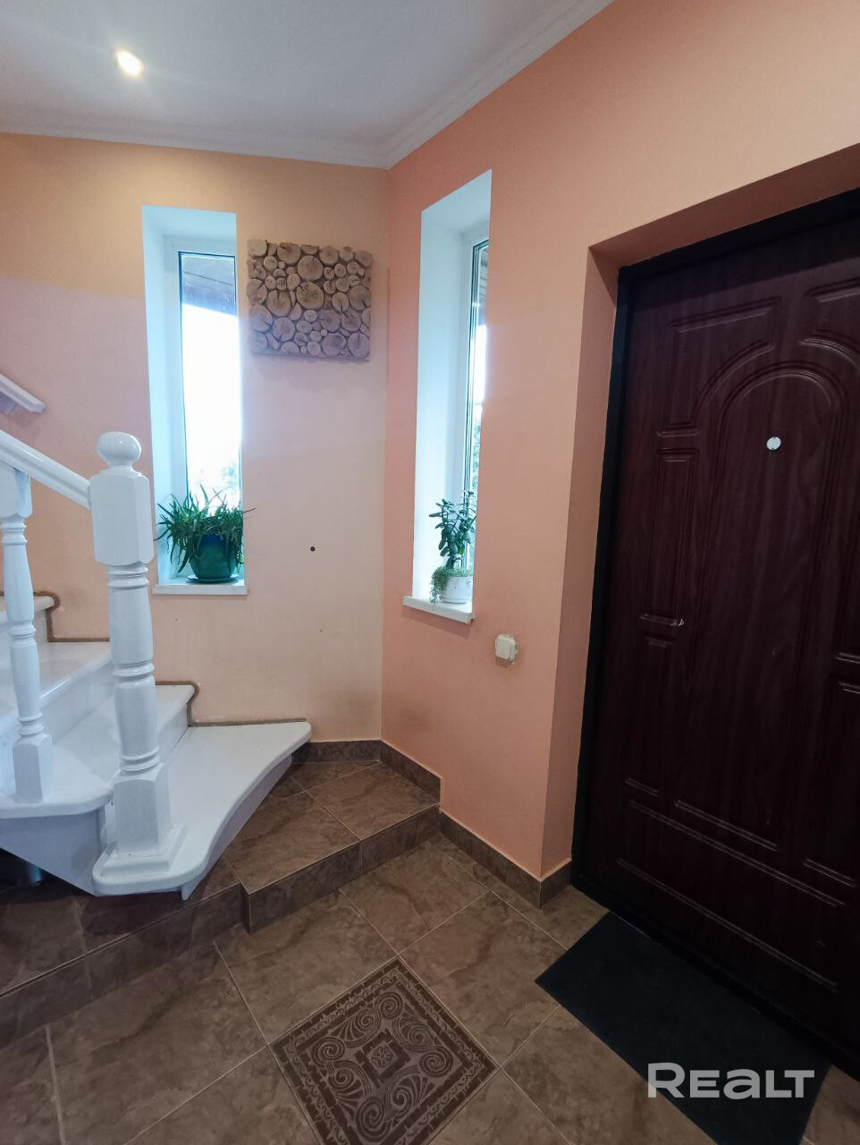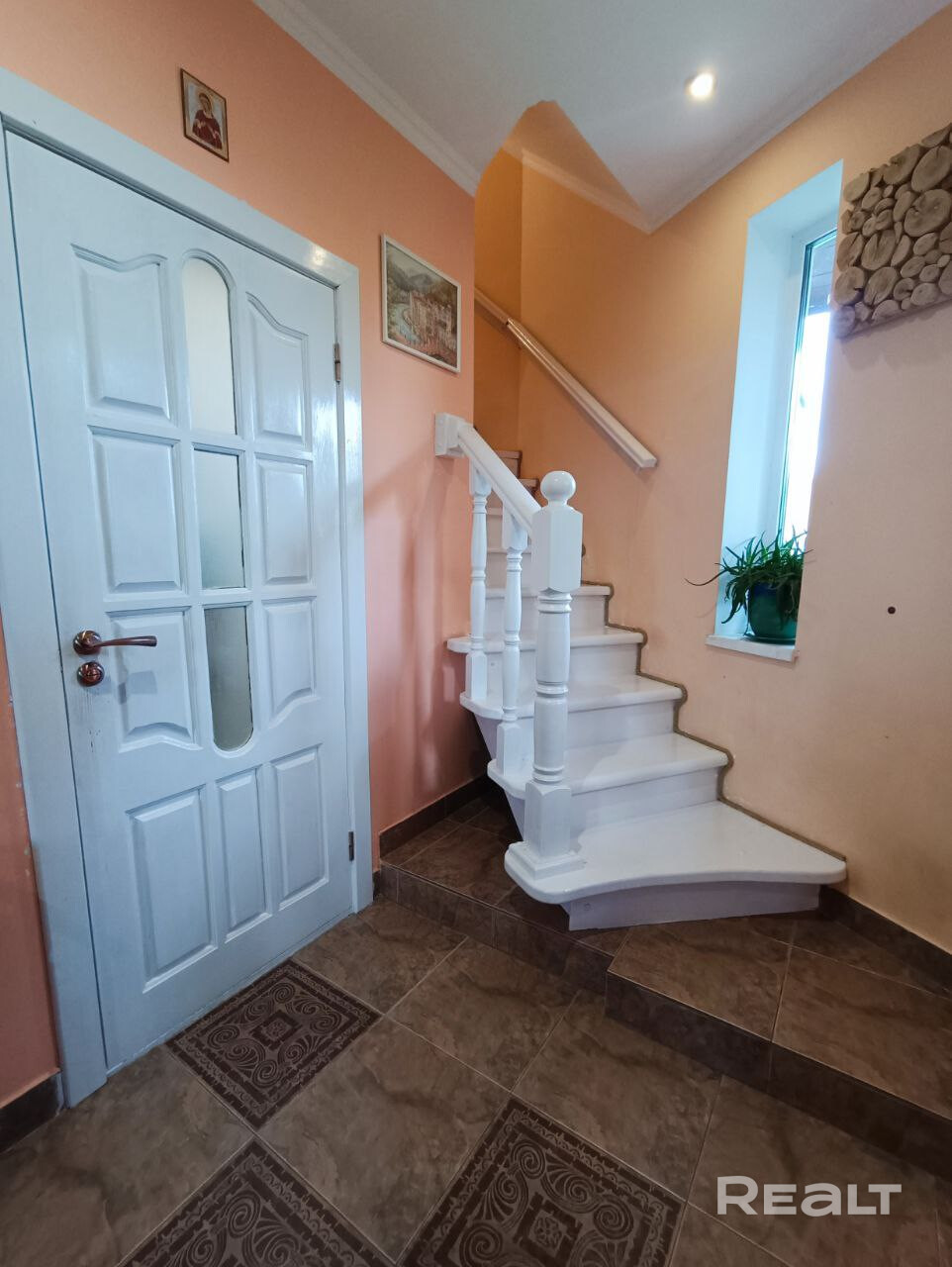 На продажу выставлен шикарный 2-этажный дом 2016 года постройки в д. Тишовка по улице Центральной. Материал стен - газосиликатные блоки, обложенные кирпичом. Общая площадь дома - 113 м2, жилая-80 м2. В доме есть все коммуникации, отопление - газовое, канализация-местная. При строительстве дома использованы только качественные материалы и продуманы все нюансы для комфортного проживания. Имеются два входа в дом, один из которых через террасу, оборудованную для отдыха. На первом этаже расположены три жилые комнаты, в одной из которых уютный камин, кухня, совмещенный санузел. На втором этаже расположена еще одна жилая комната, гардеробная и летняя комната. Кроме этого, есть сухой чистый подвал. Состояние ремонта отличное, по договоренности остается частично мебель. Участок прямоугольной формы, есть много плодово-ягодных деревьев и кустов. На участке есть баня с летней беседкой. Удачное расположение дома позволит вам жить на природе при развитой инфраструктуре, рядом магазины, аптека, остановка общественного транспорта, школа и детские сады. При необходимости, отправлю дополнительные фотографии дома, участка, бани, подвала и технического паспорта. Продажа в связи с переездом.ООО «Персональный риэлтер Недвижимость» УНП 701486724 Лицензия Министерства Юстиции № 02240/300 от 20.11.2015 г. Договор №35/4 от 10.06.2024г.