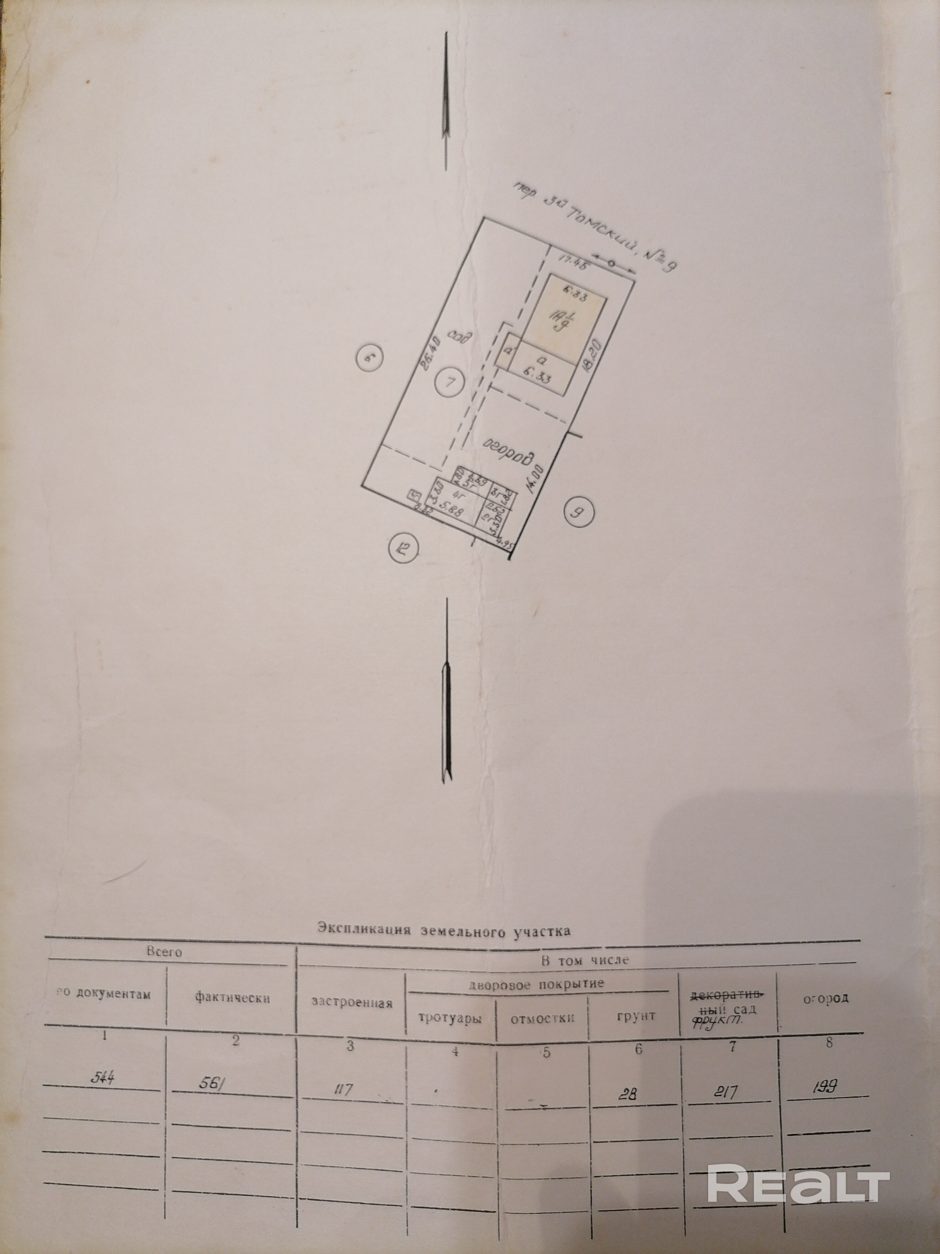 - Площадь участка