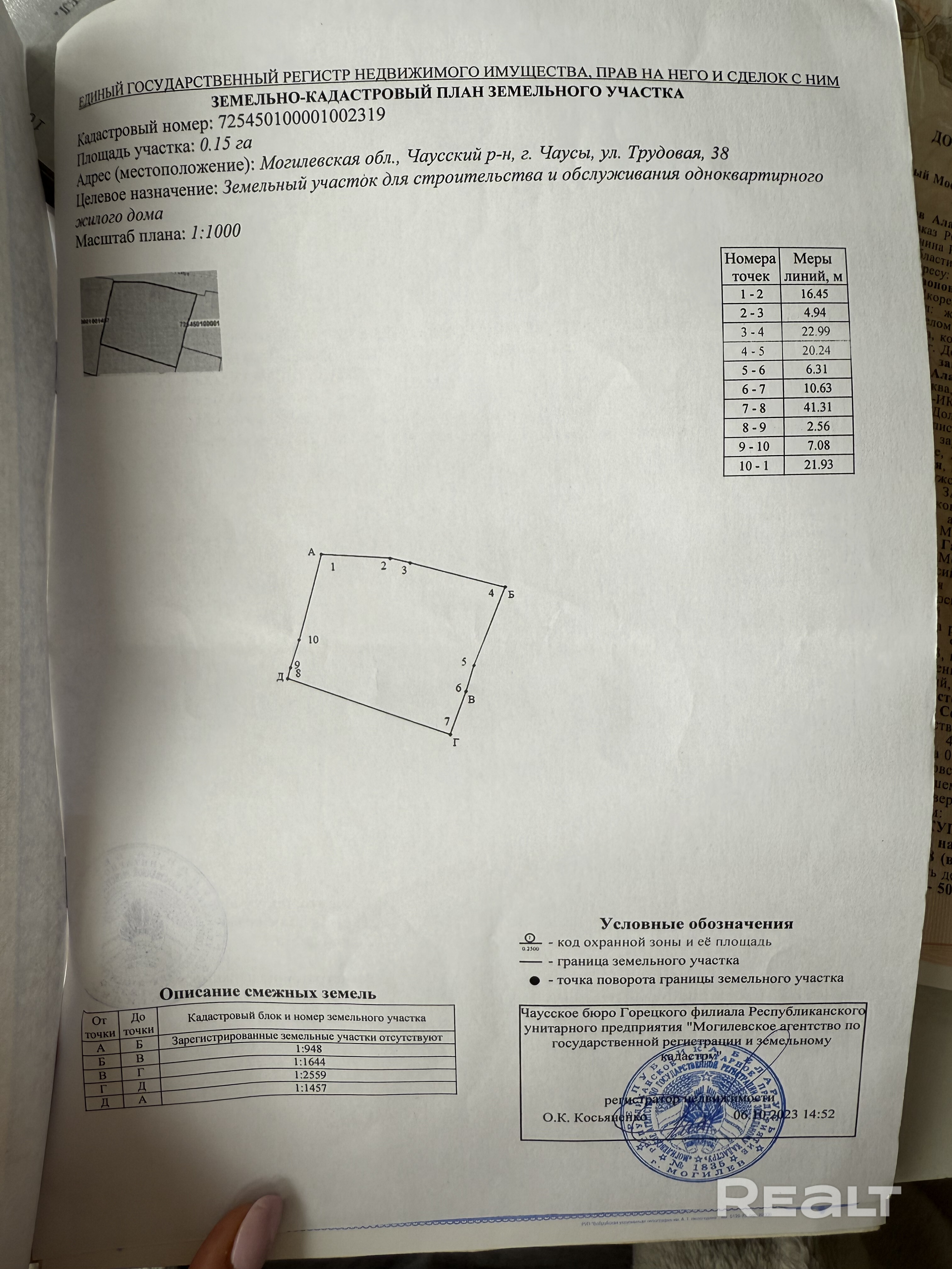 - Площадь участка