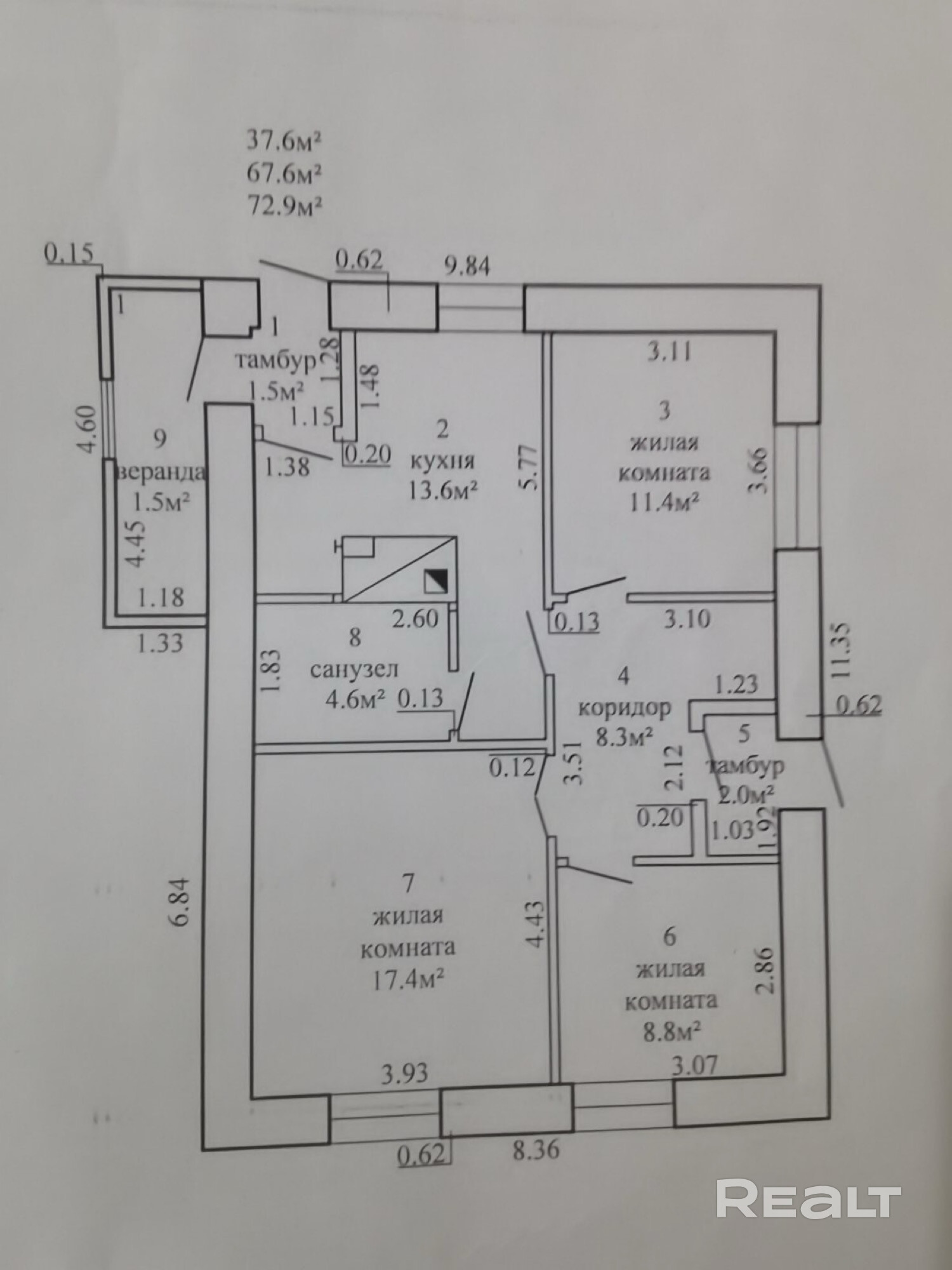 - Площадь общая