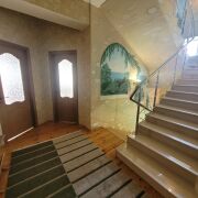 2-й уровень - просторная гостиная с кухней (расположен кухонный гарнитур, с посудомоечной машиной, вытяжкой, духовым шкафом), совместный санузел, камин (построен с использованием натурального мрамора), гардеробная, выход в цокольный этаж. В гостиной установлен кондиционер.