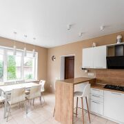 Дом состоит из просторной гостиной с камином, террасы, шести больших жилых комнат, кухни, гардеробной, двух санузлов, топочной, большой гостевой парковкой перед домом. В доме находятся все необходимые коммуникации, включая электричество, отопление, воду, канализацию и газ.