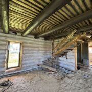 Недостроенный дом в Присно 2 по ул. Полевой, д.8 из цилиндрованного бревна ручной рубки (зимний лес диаметром не менее 28 см). Оконные блоки и лестничный марш выполнены из мореного дуба. В дом заведена вода и местная канализация.