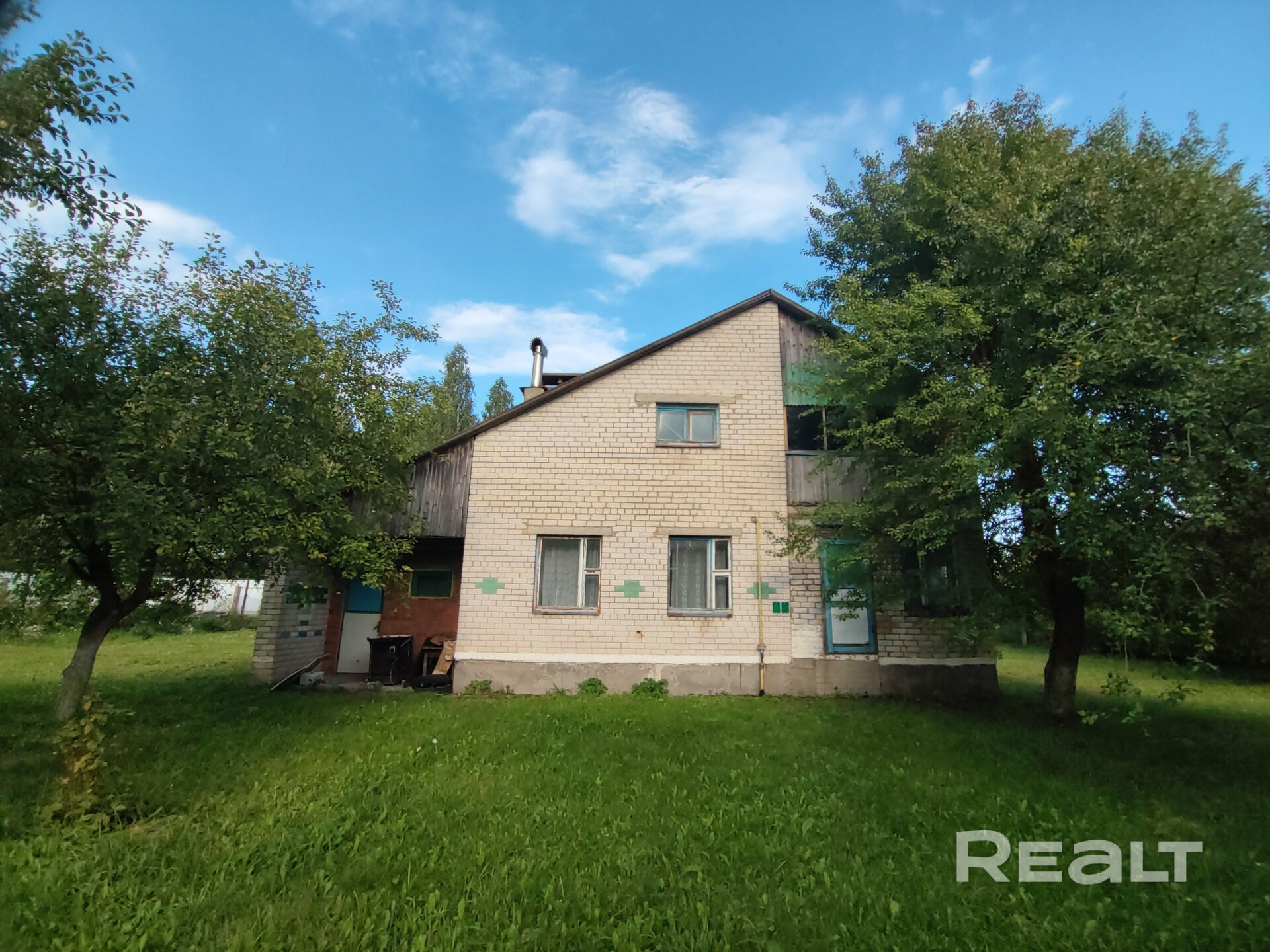 Коттедж 1991 года постройки. На первом этаже — зал, кухня, туалет, ванная, лоджия, кладовая и гараж. На втором этаже — две жилые комнаты, две лоджии, кладовая. В доме центральная канализация, водоснабжение и газ. Отопление временно отключено, так как планировалась установка котла. На участке имеются сарай и погреб.