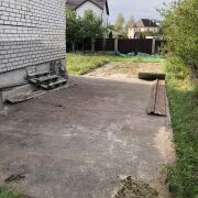 Участок размером 6.2 сотки, на котором уже заложен фундамент под баню и гараж. С лицевой стороны участок огорожен деревянным забором с воротами для въезда.