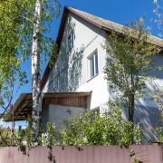 Гараж на 2 машины. Также имеется отдельно стоящая баня (сруб, обшит внутри и снаружи) и беседка. Канализация центральная, газ введён в дом, центральный водопровод, колодец глубиной 21 метр.