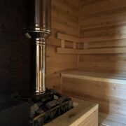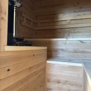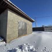 Участок ровный , на участке оштукатуренный сарай для хранения и полностью готовая баня 100% — отдыхайте с комфортом уже сегодня, с обратной стороны бани дровник.