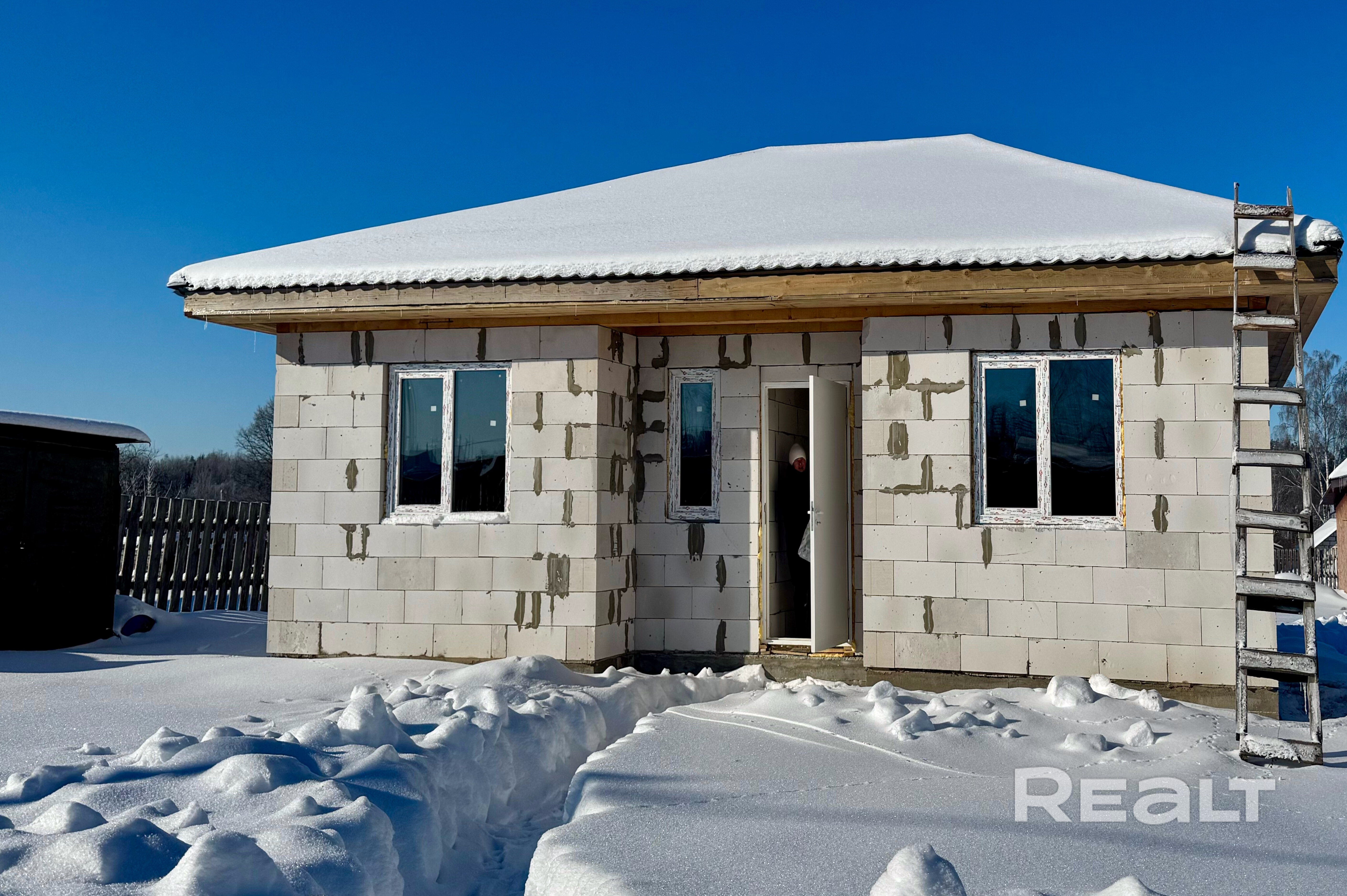 Идеальный вариант для семьи: три комнаты, большая кухня-гостиная, санузел и топочная — все готово к финишной отделке, залита черновая стяжка, подшита крыша , выполнены вводы воды и канализации прямо в дом.