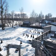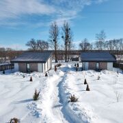 Два уютных современных дома по 43 м2 (до 6 человек в каждом): две спальни, просторная гостиная-кухня, санузел, большая терраса. В одном - дополнительный балкон.