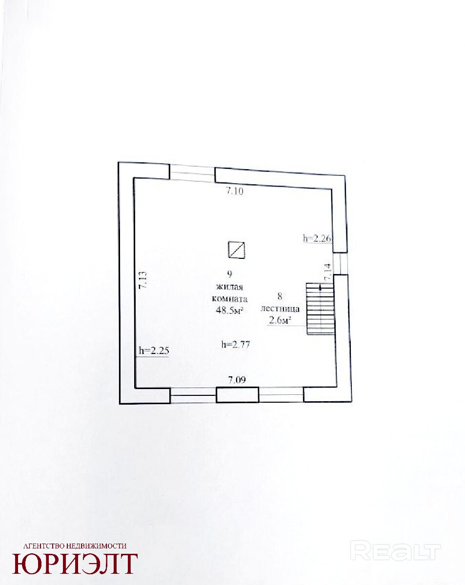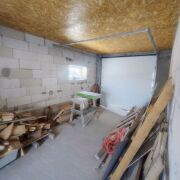 Из дома оборудован выход в гараж (24,1 кв.м.). Деревянная лестница ведёт на 2-й этаж с 1 жилой комнатой (48,5 кв.м), из которой, при Вашем желании, можно создать две/три комнаты. Высота потолка - 2,77 м.