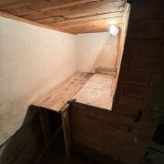 цокольный этаж, там находится печь с лежанкой, кухня, подсобное помещение с выходом на участок.