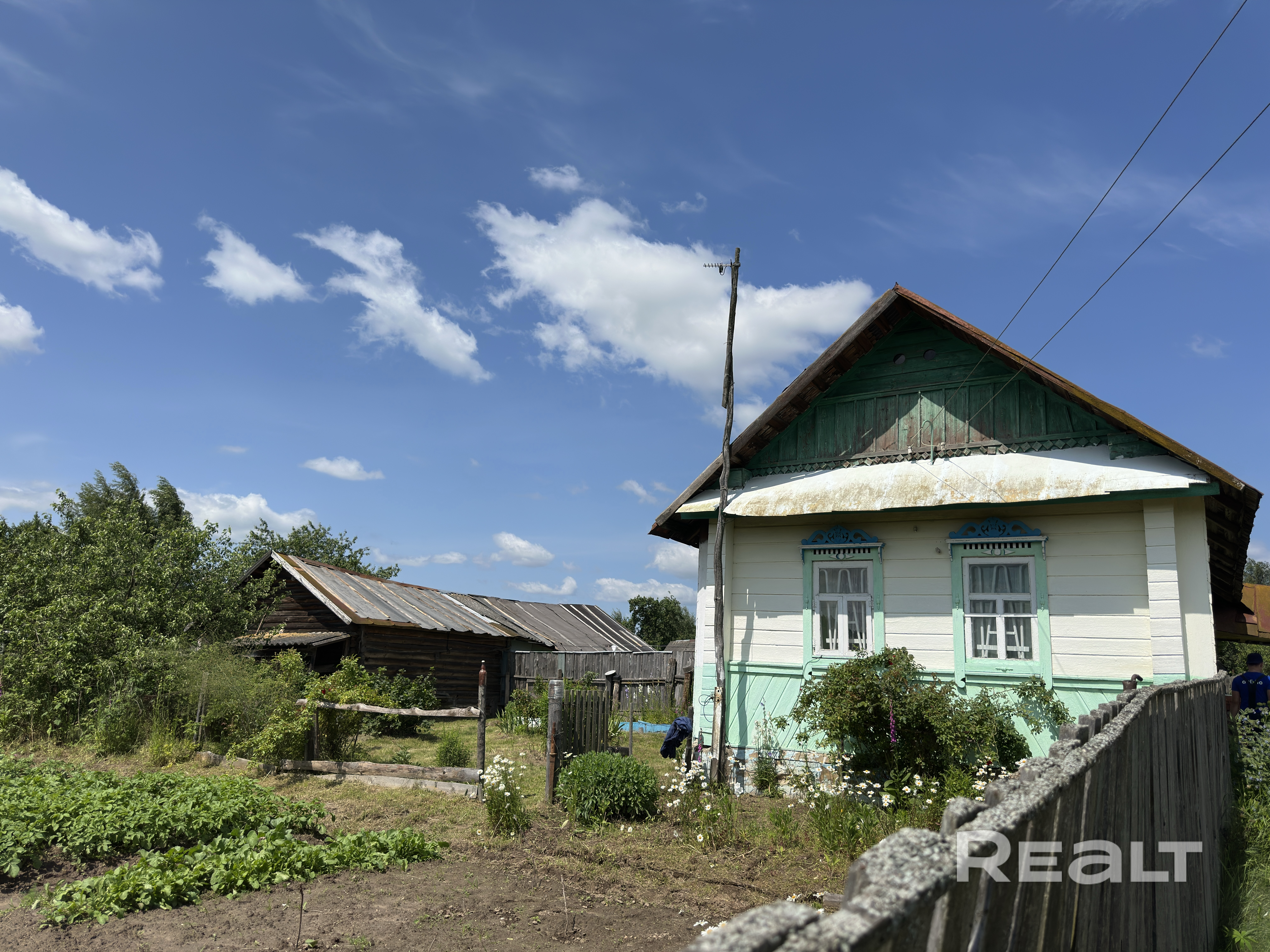 Хороший деревянный дом, отапливается печью на дровах. 2 больших комнаты, просторный коридор с кухней и кладовой. В спальне 3 кровати, в гостиной обеденный стол, большая печь с возможностью приготовления пищи в ней. На печи можно комфортно разместить до 4 человек. На участке 1 большой сарай, 3 не больших, 1 сарай с большим погребом. Двор хороший, ухоженный. Есть парник, огороды ежегодно обрабатываются и эксплуатируются 1,5 км до г. Шклов, 15-20 минут пешком, либо 5 минут на авто.