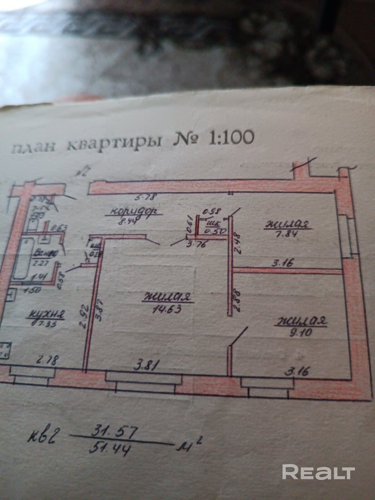 Купить 3-комнатную квартиру, г. Кричев, ул. Комсомольская, 3