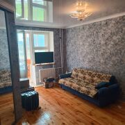 Продаю 3 комнатную квартиру. Сделан хопоший ремонт. три большие лоджии. Лоджии обиты вагонкой .Полы деревянные, ручной работы. Новые панорамные окна ПВХ на всех трёх лоджиях. Большие зеркальные встроенные шкафы. Соседи достойные!. Вид из окна на три стороны: церковь , магазин Санта, парк.Рядом аптека,почта,банки. Во дворе большая парковка. Напротив дома торговый центр Санта,рядом , школы и детские сады. Торг возможен.