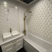 • Венецианская штукатурка: Потолки и стены украшены венецианской штукатуркой, придающей интерьеру глубину, объем и неповторимый блеск.