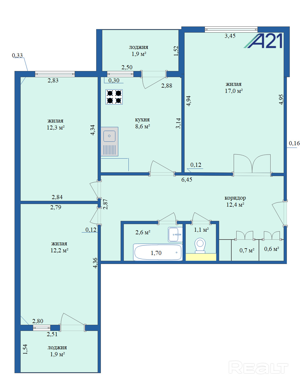 Общая площадь: 71,3 кв.м. жилая площадь (41,5 кв.м.) позволяет легко расставить мебель и организовать пространство по своему вкусу. Из светлой кухни (8,6 кв.м.) есть выход на балкон-лоджию. Просторные изолированные комнаты. Всего две лоджии (одна — из комнаты). Раздельный санузел. Большой коридор (12,04 кв.м.). Этаж 6 из 9. Идеальный вариант для комфортной жизни семьи.