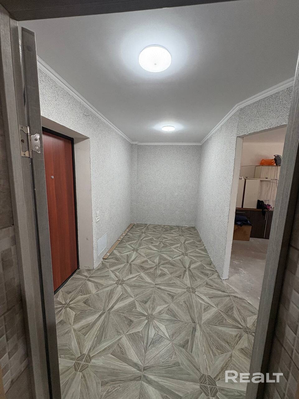 В квартире выполнена вся черновая работа. На кухне, в прихожей и в ванной комнате уложена плитка. Выровнены стены и потолки, проведена электрика. В данный период ведутся работы по нанесению на стены жидких обоев, будет установлен кухонный гарнитур и уложен ламинат в комнате. Установлены окна ПВХ. Выход на лоджию из кухни. На лоджии панорамные окна. Отличная планировка. Квартира почти готова к проживанию.