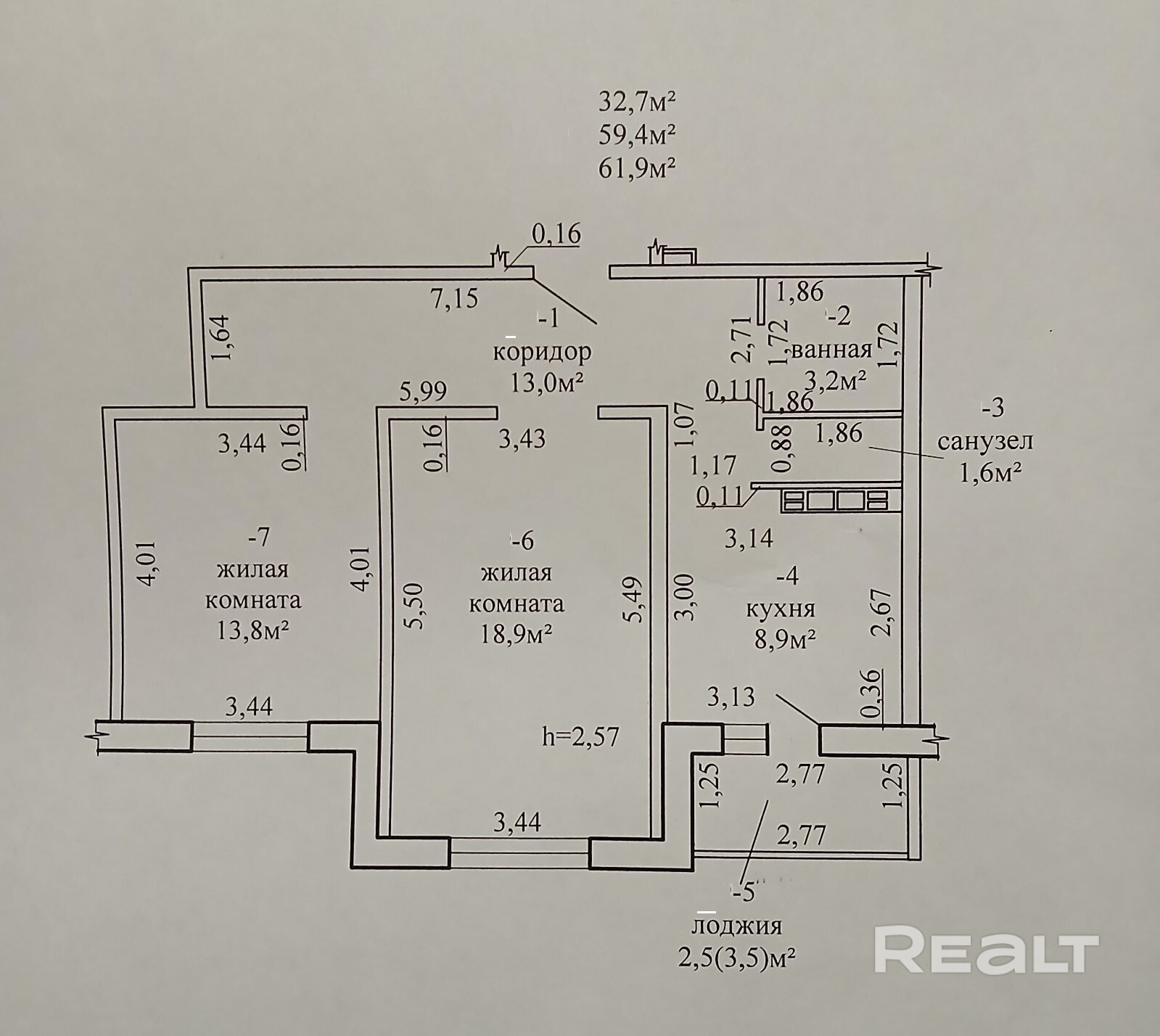 32.7 м²