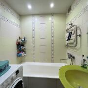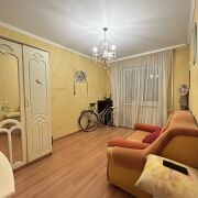 Квартира в жилом состоянии: окна ПВХ, входная дверь металлическая, потолки выровнены и покрашены, частично подвесные, на полах ламинат, на кухне плитка.