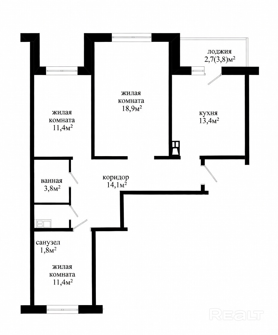 Планировка: Просторная трехкомнатная квартира с раздельным санузлом. Продуманное расположение коммуникаций дает возможность легко трансформировать пространство в еврочетырехкомнатную квартиру.