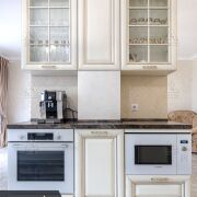 - Вся кухня Итальянского производства сделанная из массива Ясеня со всей встроенной техникой Bosch: (посудомоечная машина 45, индукционная варочная панель, духовой шкаф, вытяжка, встроенный холодильник, а также встроенная микроволновая печь). Вся кухня с доводчиками Blum.