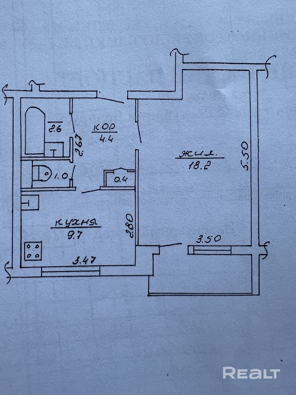 Общая площадь 36 кв.м., общая жилая – 18, жилая 10 кв. м.