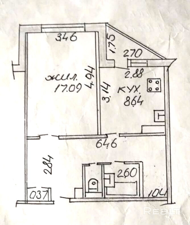 Купить 1-комнатную квартиру, г. Бобруйск, просп. Строителей, 40