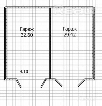 Одноуровневый кирпичный гараж с двумя воротами на два машиноместа, площадью 62 кв. метра (32,6 и 29,42 кв.м.). Перекрытия - ж/б панели, на полу – стяжка. Высота ворот позволит заехать микроавтобусу.