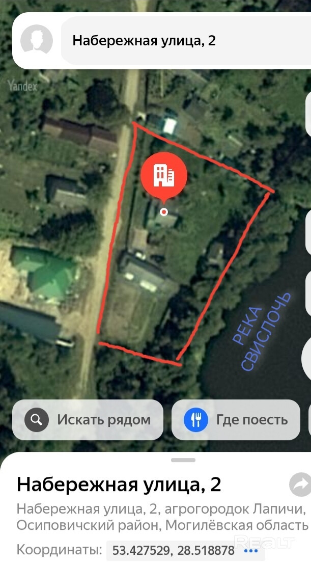Купить участок, аг. Лапичи, ул. Набережная, 2 (Осиповичский р-н, Могилевская область)