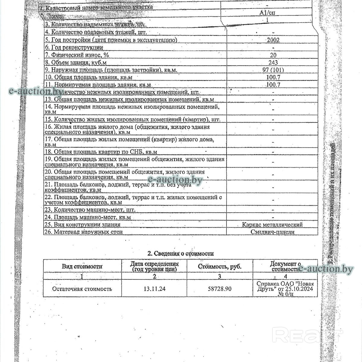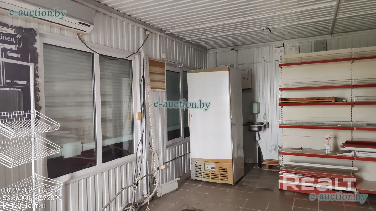 Реализуется с торгов на сайте https://e-auction.by. Отдельно стоящее здание на земельном участке с кадастровым №720483511601000377.Стены-панели металлические с утеплителем из минеральной ваты, на полу-плитка.